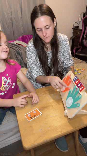 Easy as 1, 2, 3! Pick a flash card and let your child follow the pictures to set up the problem using the fingerboard and number blocks. They’ll fold and unfold the felt fingers to visualize numbers, then count to find the answer. This playful process makes math concepts clear and interactive, encouraging logical thinking and problem-solving.