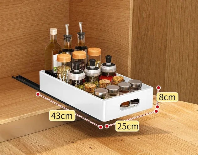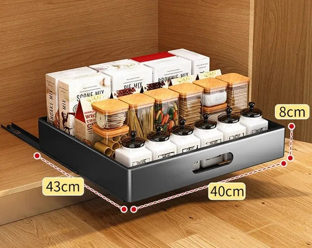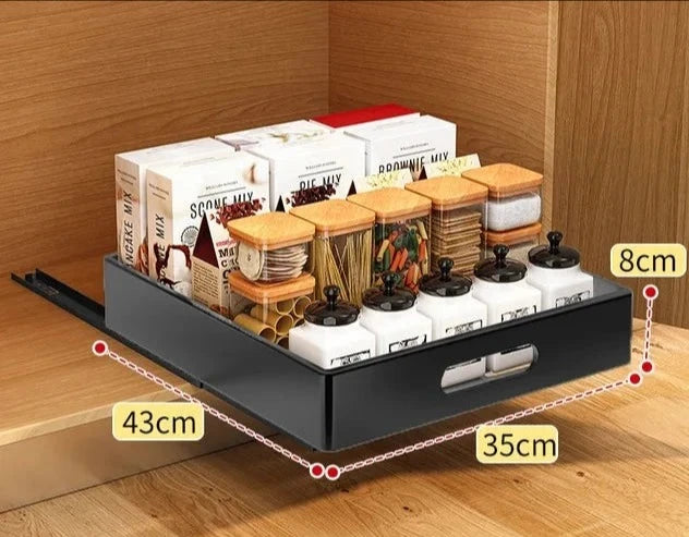 Versatile Storage Solution: Ideal for the kitchen, pantry, bathroom, living room, or office, this offers unmatched flexibility. Whether you need to organize dishes, utensils, pantry items, bathroom essentials, or office supplies, this pull-out drawer has got you covered.