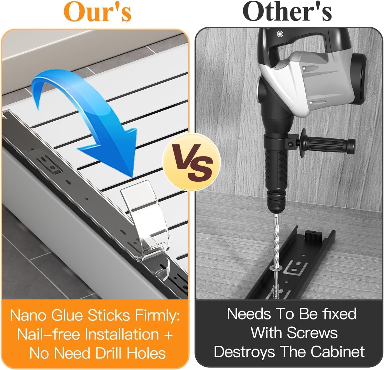 No Tools Required: Installation is straightforward. You just need to clean the surface, peel off the backing from the nanofilm, and press the organizer into place.