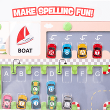 Alphabet Speedway: Start your engines — it’s time to race through the ABCs! Your little learner turns into a bead-racing champ as they zoom magnetic cars into the right letter parking spots — then park above to spell the word on the card!